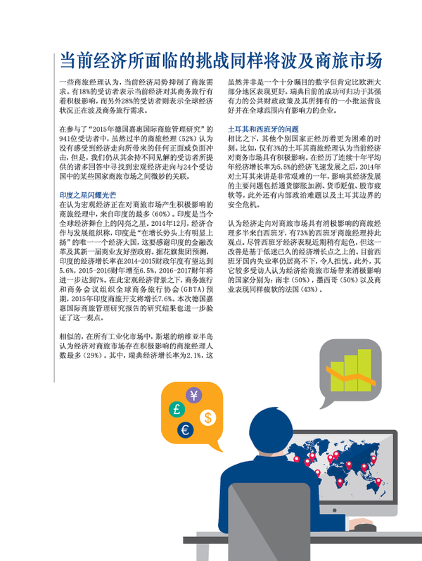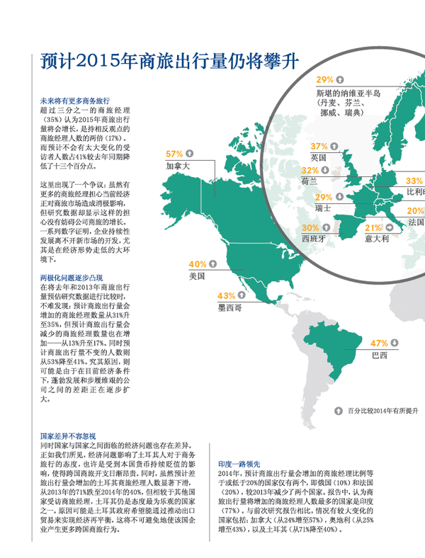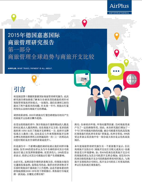 全球領先的商旅支付解決方案供應商德國嘉惠國際近日發(fā)布了《2015年德國嘉惠國際商旅管理研究報告》。調(diào)查顯示,2015年商旅出行量仍將增加而相應產(chǎn)生的商旅開支也將呈攀升趨勢。